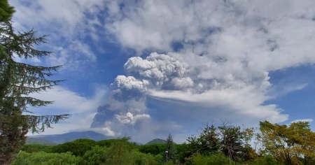 CATANIA - Tremori e boati, una fontana di lava e una nube di cenere diretta verso Nord-Est.