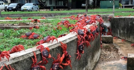 FLYING FISH COVE - Strade, ponti, boschi e spiagge dell'Isola di Natale in questi giorni sono invase da decine di milioni di granchi rossi. Ma non è una scena apocalittica degna dei peggiori film: la specie endemica sta infatti affrontando l'annuale migrazione dalla foresta alle coste per deporre le uova durante la stagione umida.