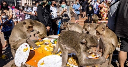 LOPBURI - Dopo due anni di assenza a causa della pandemia, è tornato il Festival delle scimmie a Lopburi, in Thailandia. I turisti non hanno esitato ad affollare le vie della città.