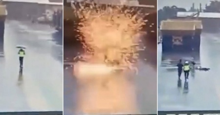 GIACARTA - Se l'è vista decisamente brutta la sfortunata guardia di sicurezza di un'azienda di ingegneria meccanica di Giacarta, in Indonesia. Mentre stava facendo "il giro" sotto la pioggia, viene improvvisamente colpita da un fulmi...