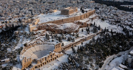 ATENE - Sono bastati pochi centimetri di neve per regalare uno spettacolo insolito della città di Atene, e del Partenone in particolare. La Grecia è infatti stata attraversata da una perturbazione che ha portato con sé freddo e n...