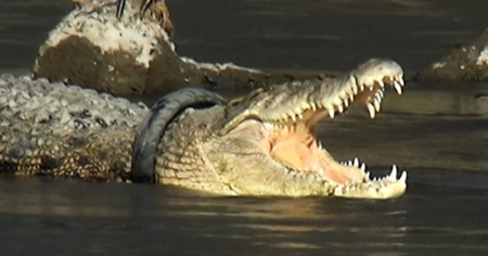 Finalmente libero dal fardello, il coccodrillo è potuto tornare a nuotare fra le acque del Palu River.