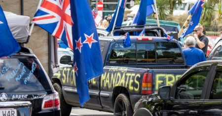 WELLINGTON - Il ciclone Dov - che ha causato interruzioni di corrente, smottamenti ed evacuazioni in tutta la Nuova Zelanda - non ha fermato la protesta a Wellington contro le misure anti-Covid ispirata ai "Convogli della libertà" in Canada.