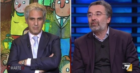 Scontro in tv tra Marco Damilano, direttore de L'Espresso, e l'ex presidente Rai ed ex amministratore delegato del CdT