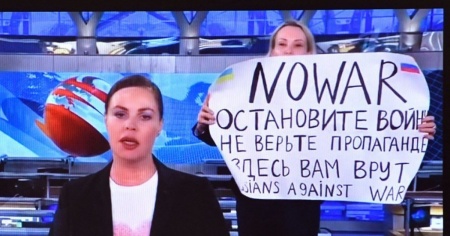 Per chi ne fosse ancora all'oscuro, Marina ha improvvisato una protesta durante l'edizione serale del telegiornale su "Channel One", una delle emittenti che fanno capo al Cremlino. Si è presentata in scena, alle spalle della sua collega, urlando «fermate la guerra!», con un cartellone fra le mani. In inglese e in russo. «No alla guerra. Non credete alla propaganda. Vi stanno mentendo». Firmato i «russi contro la guerra». Marina, dopo l'arresto, è scomparsa per diverse ore. E le Nazioni Unite hanno lanciato un appello a Mosca perché non fosse punita per aver espresso la sua libertà di parola.