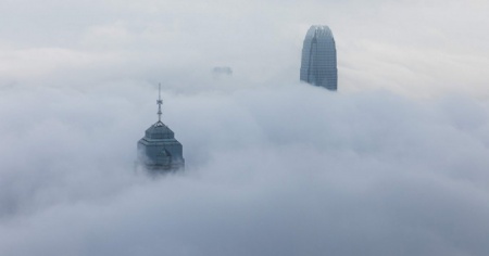 Il mare di nebbia che ha ricoperto Hong Kong.