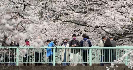 I visitatori dell'hanami (termine giapponese che indica la contemplazione primaverile degli alberi fioriti) sono accolti ancora in modo limitato nei parchi della capitale e dei dintorni, a causa del perdurare della pandemia di Covid-19.