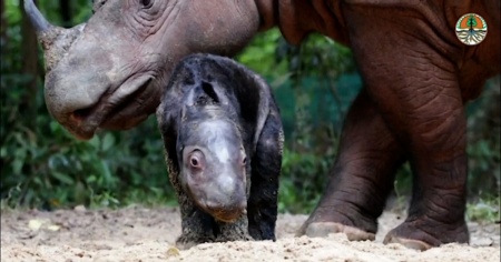 Purtroppo le nascite avvenute all'interno del santuario sono rare. Il padre del piccolo è stato il primo rinoceronte di Sumatra nato in un santuario in più di 120 anni.