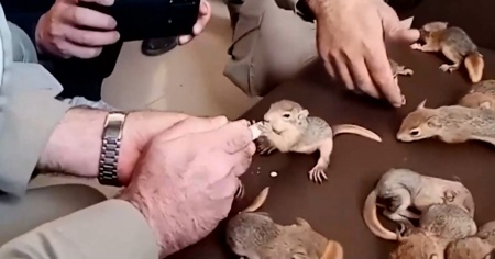 SARDASHT - In questo video, gli operatori della fauna selvatica di Sardasht, sono intenti ad allattare 32 cuccioli di scoiattolo caucasico, dopo averli tratti in salvo da trafficanti illegali di animali.