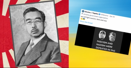 È successo negli scorsi giorni, quando in un video postato su Twitter contro l'invasione russa, le autorità di Kiev l'hanno paragonata ai tempi della Seconda Guerra Mondiale. In una sezione del filmato, gli ucraini hanno scritto che «il fascismo e il nazismo sono stati sconfitti nel 1945», con a corredo una foto di Adolf Hitler, di Benito Mussolini e dell'Imperatore giapponese di allora, Hirohito.