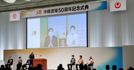 Alla manifestazione ha partecipato il premier Fumio Kishida, e da un collegamento online l'imperatore Naruhito con la consorte Masako. Il governatore di Okinawa, Danny Tamaki, eletto su una piattaforma anti-governativa, ha ricordato il sacrificio richiesto ai residenti, ribadendo «come gli obiettivi di 50 anni fa siano stati essenzialmente disattesi».