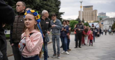 KIEV - Stamattina a Kiev, davanti al quartier generale di Ukrposhta, le poste ucraine, oltre 500 persone si sono messe in fila per il nuovo francobollo patriottico.