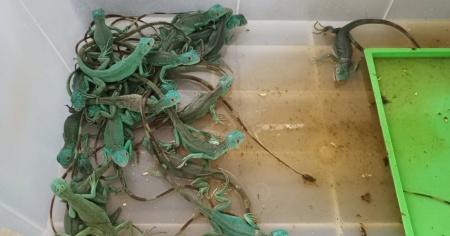 Nella notte tra domenica e lunedì due donne sono state intercettate dalla polizia aeroportuale mentre cercavano di imbarcare 104 animali, molti vivi, alcuni morti. Destinazione del volo: Chennai. All'interno delle loro valigie sono stati scoperti due armadilli, due istrici, 50 iguane e 35 tartarughe di fiume a macchie gialle, sei camaleonti sudanesi e otto scinchi fasciati di Peter. Tutti disidratati.