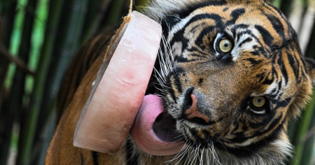 I guardiani dello zoo hanno quindi escogitato divertenti passatempi rinfrescanti per tigri, otarie ed elefanti (e non solo) che permettono loro di trovare un po' di sollievo e refrigerio. Cubi e sfere di ghiaccio con all'interno gustosa frutta, carne oppure pesce, sono stati posizionati in punti strategici dei recinti.