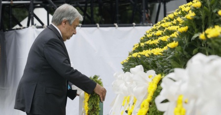 Il segretario dell'Onu ha parlato nel 77esimo anniversario della bomba nucleare sganciata su Hiroshima.