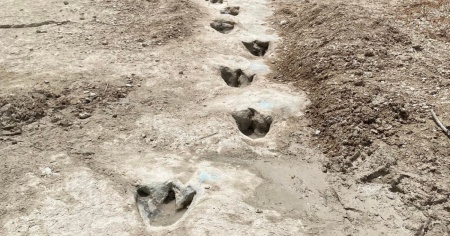 Un fiume in secca ha permesso di scoprire delle tracce di un enorme dinosauro