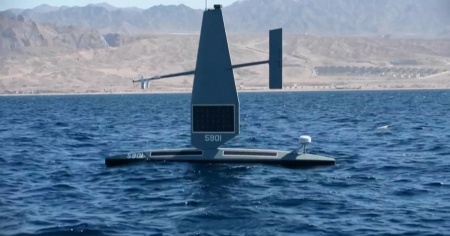 AQABA - Nel video, una nave di superficie senza pilota Saildrone Explorer, o USV, che naviga nel Golfo di Aqaba. Lo scopo principale di questo veicolo è quello di raccogliere dati di alta qualità dagli oceani autonomamente, anche per missioni della durata di un anno; successivamente questi possono essere elaborati e utilizzati in diverse applicazioni. Il suo collaudo in acqua è stato eseguito durante l'esercitazione "Digital Horizon" svoltasi nel Golfo di Aqaba nel 2021. Lunga 7 metri e alta 5, può navigare a una velocità di crociera di 5,55 km/h.
