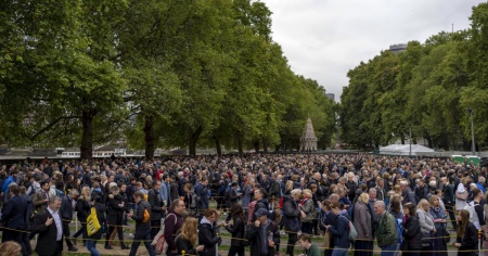 Dopo la processione reale di ieri e l'apertura al pubblico della camera ardente - in calendario per quattro giorni sino al funerale e alla sepoltura della sovrana di lunedì - la coda si è stabilizzata stamattina, sotto un cielo tornato grigio, per una lunghezza di circa cinque chilometri sulle rive del Tamigi: alimentata da persone di ogni età.