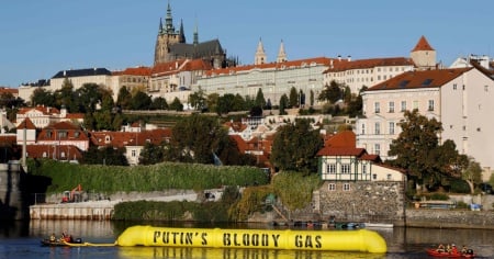 La protesta - A una settimana dall'apparente sabotaggio del Nord Stream - si legge in una nota - gli attivisti hanno innalzato nel fiume Moldava un finto gasdotto di 30 metri per ricordare la vulnerabilità delle infrastrutture per i combustibili fossili.