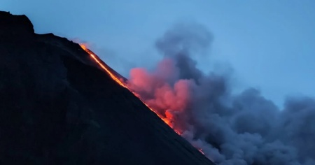 STROMBOLI - La lava continua a colare lungo le pareti dello Stromboli. Il vulcano è tornato a far sentire la sua voce ieri pomeriggio e da allora non si è più fermato. Le immagini che giungono dall’isola siciliana sono spettacolari. Ieri la colata lavica ha raggiunto addirittura il mare. Il suo contatto con l'acqua ha sollevato intense nubi di vapore.
