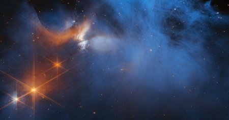 Un team internazionale di astronomi ha annunciato la scoperta di ghiacci nelle regioni più buie e fredde di una nube molecolare, grazie all'utilizzo del telescopio spaziale James Webb.