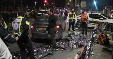 Tra le sette vittime c'è anche una coppia di sposi: Eli (48 anni) e Natalie (45) Mizrahi. Il padre dello sposo ha detto alla televisione che i due erano nel loro appartamento quando hanno sentito i primi spari. «Si sono lanciati in strada per soccorrere i feriti e non hanno notato il terrorista che era fermo accanto a una automobile in sosta. Questi ha sparato loro a bruciapelo, uccidendoli sul posto». Le vittime dell'attentato sono ebrei ortodossi. In base alla ortodossia ebraica, i loro funerali dovrebbero avere luogo al termine del riposo sabbatico, nella nottata di oggi.