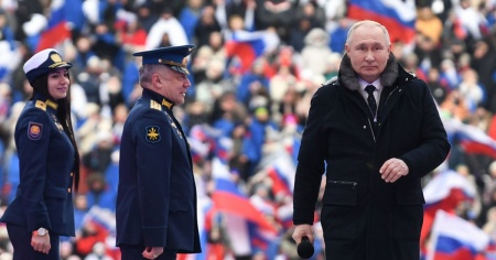 Putin del resto oggi è tornato a spiegare l'intervento in Ucraina come una battaglia «ai nostri confini storici, per la nostra gente». Il presidente ha pronunciato queste parole per infiammare i russi accorsi allo stadio Lushniki di Mosca per un concerto patriottico per la festa dei Difensori della patria, cioè le forze armate.