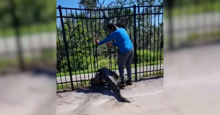 MIAMI - Un alligatore stava passeggiando su uno dei tanti campi da golf presenti in Florida, quando la sua strada viene bloccata da una recinzione in ferro. Dopo aver valutato il problema, il rettile ha deciso di volerla oltrepassare senza prenderla larga, quindi semplicemente passandoci in mezzo.