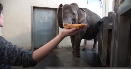 Da chi avrà imparato? Dall'uomo? Gli studiosi interessati alle abilità di un'elefantessa dello zoo di Berlino in grado di sbucciare banane