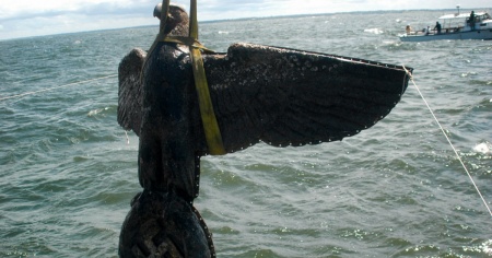 L'aquila, larga due metri e pesante oltre 300 chilogrammi, con una svastica tra gli artigli, adornava la prua dell'Admiral Graf Spee, una corazzata coinvolta in una delle prime scaramucce navali della seconda guerra mondiale. Il capitano Hans Langsdorff aveva affondato la corazzata - una delle più grandi del Terzo Reich - il 17 dicembre 1939, dopo la battaglia del Rio de la Plata contro le navi britanniche. La scultura venne poi recuperata nel 2006, dopo dieci anni di ricerche nelle acque uruguaiane, e dopo una battaglia procedurale, la Corte Suprema dell'Uruguay ha stabilito che l'aquila è interamente di proprietà dello Stato.