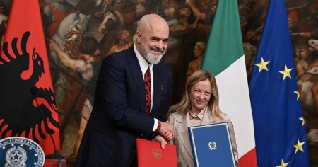 ROMA - Due centri, che vedranno luce in Albania, per accogliere i migranti irregolari che verranno salvati nel Mediterraneo dalla Marina italiana oppure dalla Guardia di Finanza (escluse quindi le navi delle Ong). Questo il contenuto dell'accordo firmato lunedì a Roma tra Giorgia Meloni e il premier albanese Edi Rama. «È un accordo di respiro europeo. Dimostra che si può collaborare sul fronte della gestione dei flussi. L'Albania darà la possibilità di utilizzare alcune aree del territorio albanese con l'Italia che potrà allestire centri», ha spiegato Meloni aggiungendo che il protocollo non riguarderà «minori, donne in gravidanza e altri soggetti vulnerabili».