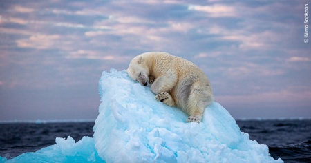 LONDRA - Il nostro è un mondo indiscutibilmente alla deriva, dilaniato da guerre e minacciato dal clima che cambia. E lui, un orso bianco, riposa su un piccolo iceberg alla deriva, appunto. Si è addormentato ed è stato immortalato nell'arcipelago norvegese delle Svalbard dalla macchina fotografica di Nima Sarikhani, fotografo amatoriale.