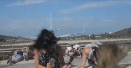L'aereo, decollando, emette un getto d'aria calda in grado di spostare un essere umano. I turisti lo sanno molto bene, ma pur di farsi un selfie o di avere un video da mostrare agli amici, sono disposti a rischiare di essere spazzati via dalla potenza del motore dell'aereo.