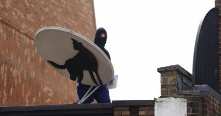 Come si vede dalle fotografie diffuse dai media del Regno Unito un uomo mascherato ha divelto l'antenna e, aiutato da un altro individuo, si è allontanato indisturbato.