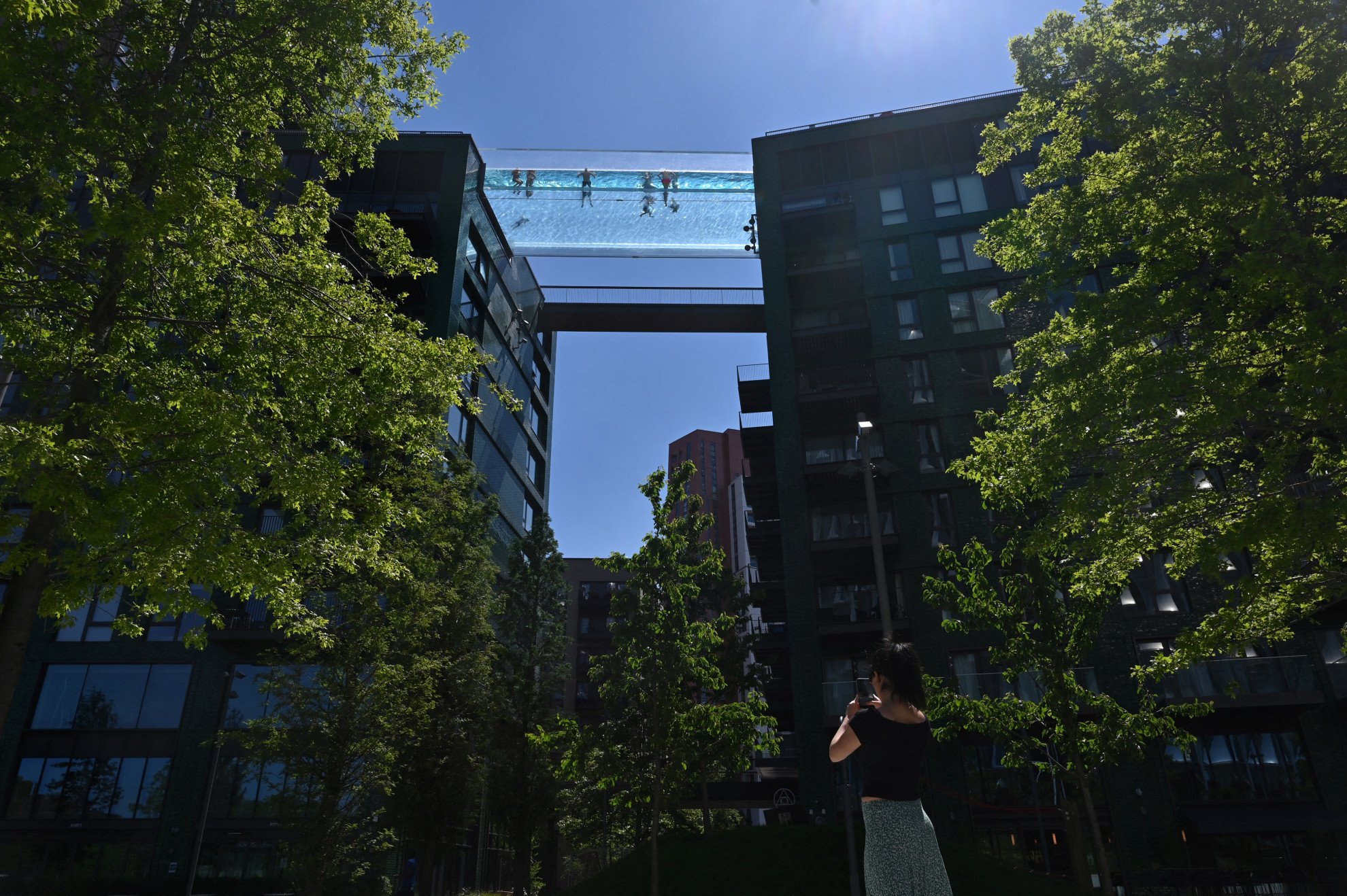 Lunga 25 metri, l'avveniristica piscina londinese lascia tutti con il fiato sospeso, sia coloro che vi nuotano dentro, con la sensazione di fluttuare nel vuoto, sia coloro che vi passano sotto e vedono dei corpi galleggiare a una considerevole altezza. Frutto dell'ingegno della società EcoWorld Ballymore, leader nel settore della rigenerazione urbana, e dello studio di architetti Arup Associates, la piscina sospesa nel vuoto è a disposizione unicamente degli inquilini dell'Embassy Gardens, che vanta appartamenti da milioni di sterline, anche se è possibile ammirarla anche da coloro che vi transitano vicino.