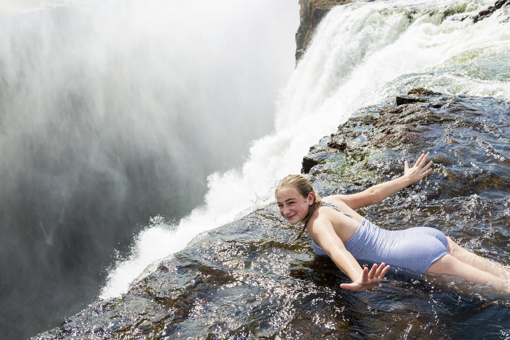 Protetti soltanto da una barriera di roccia, gli intrepidi viaggiatori possono provare il brivido di bagnarsi in questa piscina naturale sotto la quale le acque impetuose del fiume compiono un salto di 130 metri nel vuoto, anche se, a dire il vero, il bagno è permesso solo tra il mese di agosto e quello di dicembre, quando la portata del fiume si riduce notevolmente anche se il grado di pericolosità rimane molto alto.