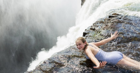 Devil's Pool (Zambia) - Che direste, poi, se vi venisse proposto di fare un tuffo nelle Piscine del Diavolo? In cima alle cascate Victoria, al confine tra Zambia e Zimbawe, tra lo scorrere dell'enorme massa d'acqua del fiume Zambesi si trova la Devil's Pool, un piccolo bacino naturale che si affaccia a strapiombo sulle cascate sottostanti.
