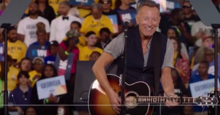 Chitarra a tracolla, jeans e panciotto blu, il Boss è salito sul palco della nera Atlanta, non esattamente il pubblico di uno che per anni ha cantato le gesta della working class e della classe media bianca, per dare il suo contributo alla corsa della democratica assieme a Barack Obama, Spike Lee e altre icone della cultura di sinistra americana.