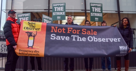 La storica protesta sindacale è stata organizzata contro la proposta di vendita dell'Observer alla Tortoise Media, una pubblicazione digitale creata 5 anni fa da un ex giornalista di primo piano della Bbc, James Harding, e da un ex ambasciatore statunitense nel Regno Unito, Matthew Barzun.