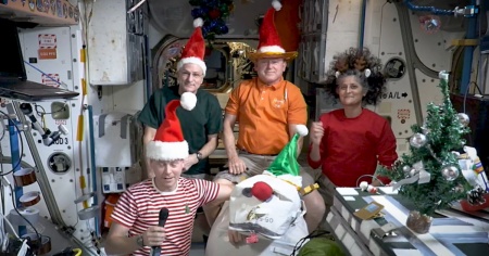 MILANO - Cappellini da Babbo Natale, l'alberello decorato e un finto pupazzo di neve: è tutto pronto sulla Stazione spaziale internazionale per celebrare il Natale in orbita, come spiegano in un videomessaggio di auguri i quattro astronauti della Nasa a bordo: Suni Williams, Don Pettit, Nick Hague e Butch Wilmore.