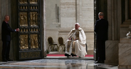 Il Papa (in sedia a rotelle) dà il via al Giubileo