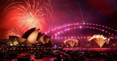 Sydney, autoproclamata "capitale mondiale del Capodanno", ha lanciato nel cielo nove tonnellate di fuochi d'artificio dalla sua famosa Opera House e dall'Harbour Bridge a mezzanotte.