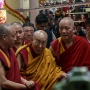 Nel frattempo, migliaia di devoti di Jetsun Jamphel Ngawang Lobsang Yeshe Tenzin Gyatso (il suo nome spirituale completo, ovvero "Sacro Signore, Gloria gentile, Compassionevole, Difensore della fede, Oceano di saggezza") hanno suonato tamburi e corni oggi nel monastero dove vive in esilio.