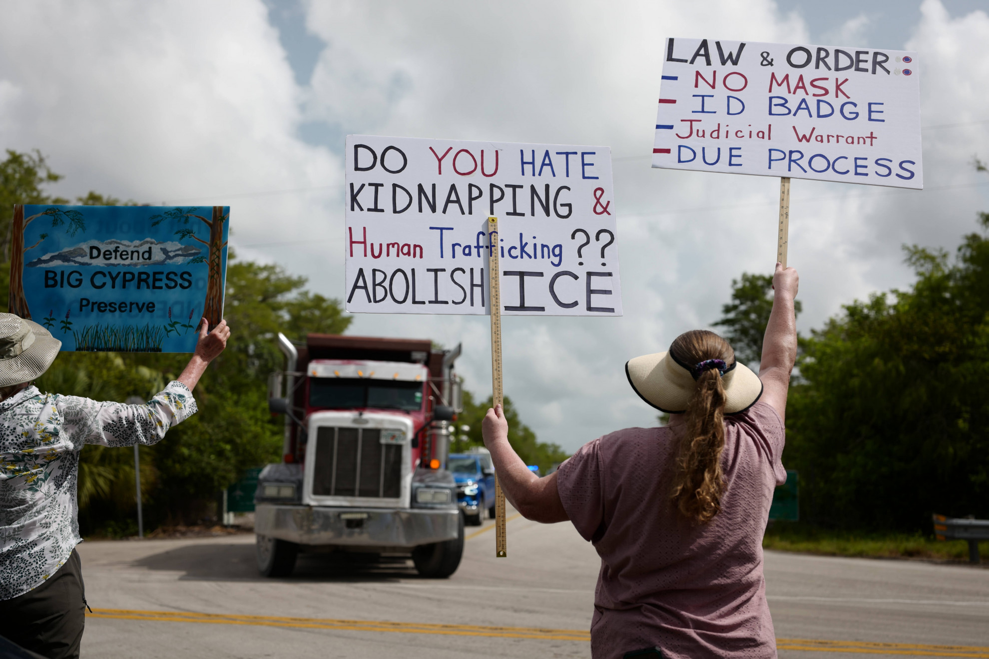 Anche per l’Alligator Alcatraz, il governatore DeSantis ha dovuto aggirare le leggi sugli appalti pubblici. Secondo il quotidiano Il Manifesto, questa prigione è stata costruita per dare un segnale simbolico all’elettorato repubblicano, dimostrando un'azione “decisa” contro l’immigrazione irregolare e contro il sovraffollamento carcerario, che ha raggiunto i 58'000 detenuti, rispetto ai 39'000 registrati all’insediamento di Trump.