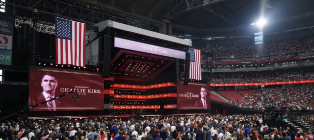 Sui grandi schermi durante il memorial di Charlie Kirk è stato trasmesso il video dell'evento dell'attivista alla Utah Valley University il 10 settembre, il giorno in cui fu ucciso a colpi di arma da fuoco. Nello stadio è sceso il silenzio tra i presenti. Il filmato mostrava Kirk emozionato che lancia cappelli alla folla, ridendo all'inizio del suo tour universitario, poco prima della tragedia.