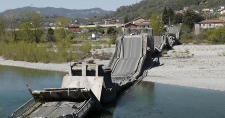 +++Aulla (Massa Carrara), crolla #ponte sul fiume #Magra. Le immagini della #Poliziastradale sul posto per viabilità. Attualmente chiusa la SS62 pic.twitter.com/2drSJVxmW4