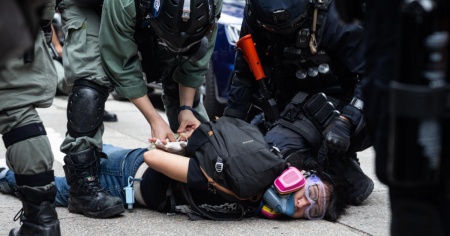 Gli agenti, in tenuta antisommossa, hanno caricato, usato spray urticanti, gas lacrimogeni e cannoni ad acqua per disperdere le migliaia di persone scese in strada a protestare contro la legge sulla sicurezza nazionale all'esame a Pechino del Congresso nazionale del popolo.