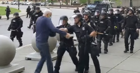 NEW YORK - È uno dei tanti manifestanti che stavano protestando per le strade di Buffalo, nello stato di New York, solo un po' più anziano degli altri, 75 anni si scoprirà poi.