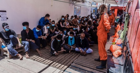 A bordo oggi sono stati effettuati i tamponi sui 180 naufraghi, a occuparsene personale medico dell'Asp di Ragusa e due sanitari dell'Usmaf. A Porto Empedocle (in provincia di Agrigento) la Ocean Viking dovrebbe arrivare domani alle 8 e restare in rada: il trasbordo dei 180 migranti sulla nave-quarantena Moby Zaza, acquisiti gli esiti dei tamponi, dovrebbe avvenire sempre in rada, a occuparsene sarà la Guardia costiera.