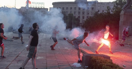 Ancora scontri tra manifestanti e polizia a Belgrado
